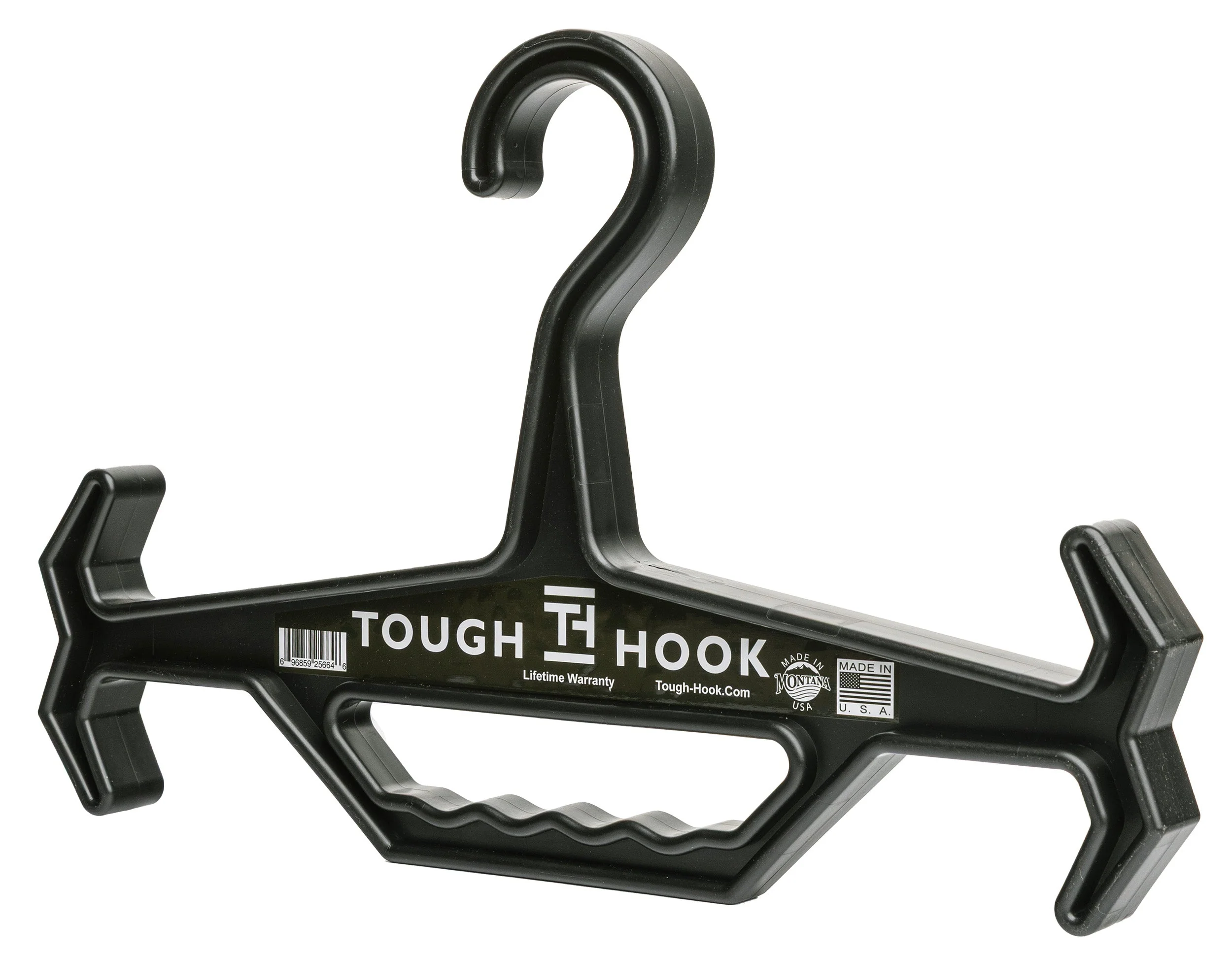 The Original Tough Hook Hanger on jytky henkari, jolla voi ripustaa tai kantaa varusteita ainakin 200 paunan eli 90 kilon verran. Äärimmilleenkään varusteltu tasteluliivi nelostason levyn kera tuskin painaa näin paljon, joten henkarin rikkoutumisesta ei ole huolta – ota kuitenkin huomioon, että vaatekaappisi ei välttämättä tällaisia painoja kestä.