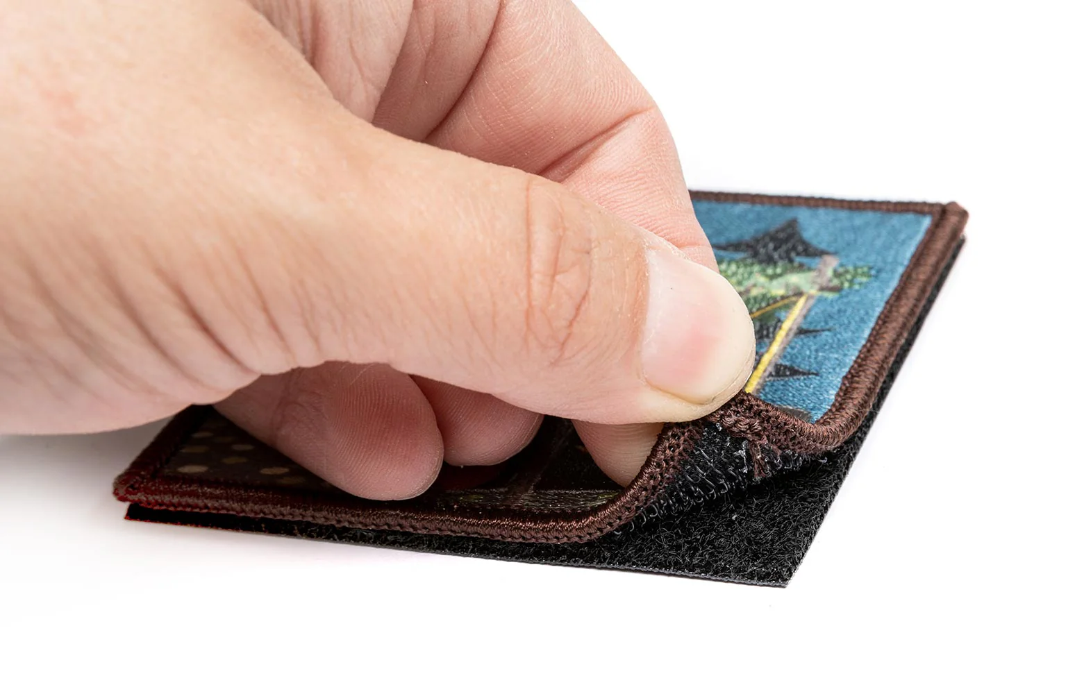Merkin mitat n. 80 x 80 mm. Kääntöpuolella velcroa, sitä koukkupuolta, tietenkin.